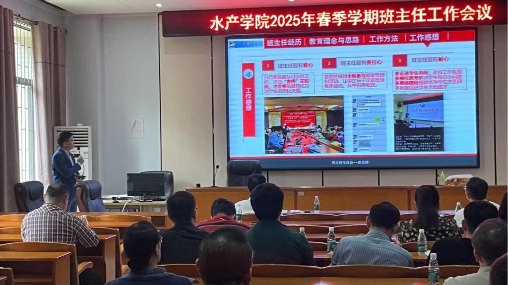 3月13日,为扎实做好新学期学生工作,学院在水产楼109室召开2025年春季新学期班主任工作会议,全体班主任、辅导员及部分研究生导师参加会议,会议由学院党委副书记孔沛球主持。会上,班主任代表王学锋教授就自身在学生管理、班级建设、育人工作等方面进行经验交流,强调学生工作要以生为本,为生着想,为生引路。随后,班主任代表田昌绪副教授,结合自身多年的班主任工作经历,聚焦学风建设、思想教育、班干部建设,用爱心、责...