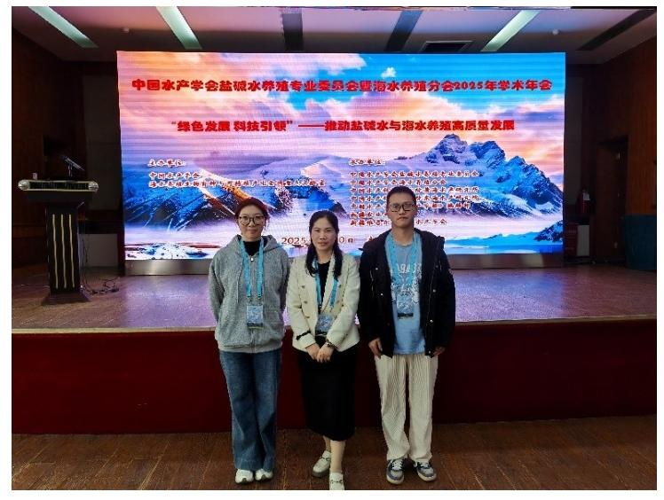 本次年会以“绿色发展 科技引领——推动盐碱水与海水养殖高质量发展”为主题,聚焦绿色养殖技术模式、智能养殖、疫病防控、遗传育种等关键议题,汇聚全国行业专家、师生及企业代表。我院由庞欢瑛教授带队,携张喻嘉、杨帅两位研究生参会。会议期间,张喻嘉同学作题为《溶藻弧菌VaCobQ 蛋白去乳酸化功能验证及致病机制研究》的学术报告。杨帅同学则以《水生动物病原菌哈维弧菌赖氨酸琥珀酰化的系统研究》为题分享成果。两位研究生深挖病原弧菌蛋白的功能,为病害防控提供了新靶点,展示了我院在水产动物病原菌致病机制研究领域的成果。