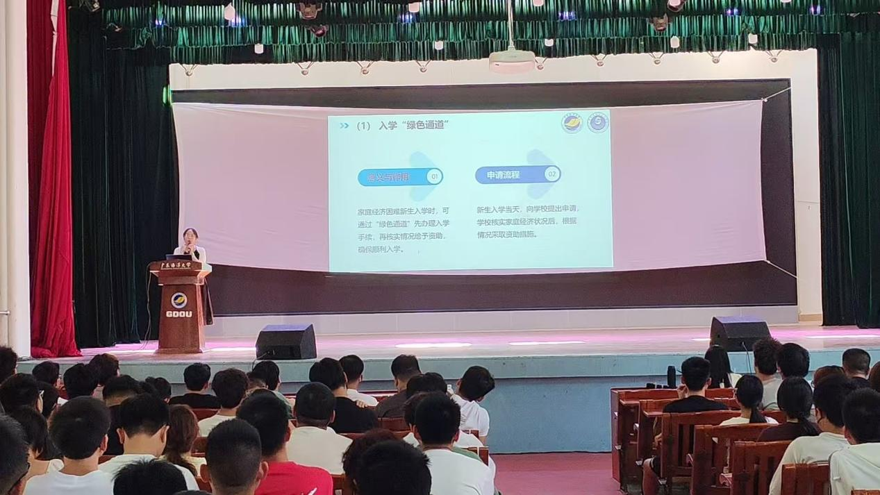 宣讲会上,赵珊耐心解答疑问,并鼓励新生“树立信心、提前规划、多元发展”同时也强调做人要以诚信为本。最后,她以“助学作翼凌云起,逐梦扬帆破浪行”寄语学子,勉励大家善用政策资源,以诚信品格护航学业征程,传承学校“广学明德”的校训精神。现场掌声热烈,新生们纷纷表示受益匪浅。