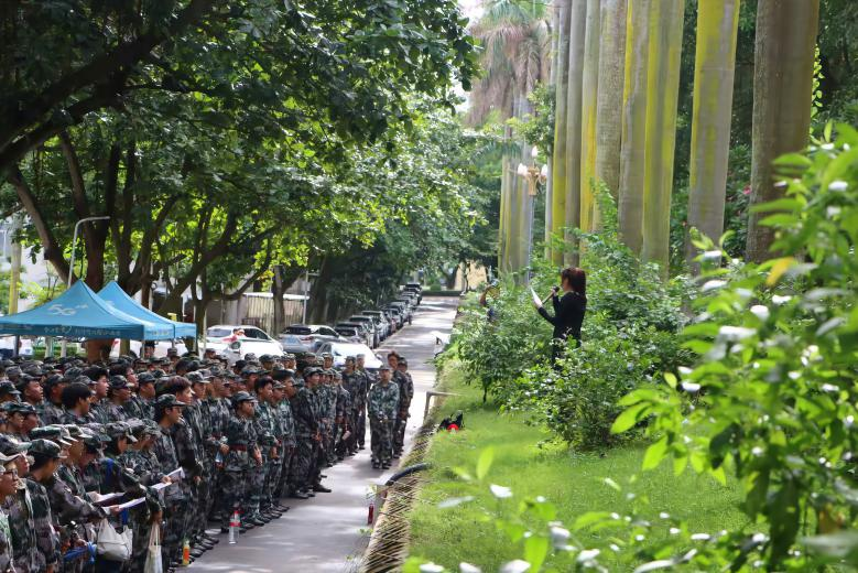 军训的日子里,除了汗水,还有满溢的温暖。学院领导始终牵挂着新生,多次来到训练场,在炎热时带来下火凉茶,在下雨后送上暖身姜茶,询问“训练累不累”“有没有不适应”,用亲切的话语驱散新生的紧张。