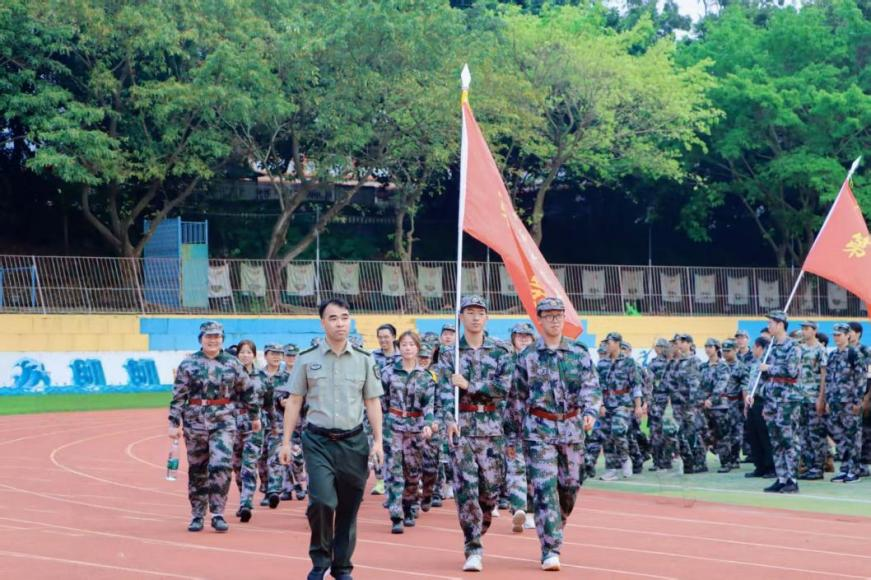 队列训练则是“团队默契的试金石”。为了让“齐步走”时脚步声汇成一个节拍,“正步走”时摆臂高度不差分毫,新生们在教官的指导下拆解每一个动作:“摆臂时小臂要与地面平行”“步幅控制在75厘米”,教官手把手纠正偏差;队列里,前排同学轻声提醒“左边的同学胳膊再抬一点”,后排同学及时调整步频跟上节奏。从最初的脚步杂乱、摆臂参差,到后来的队列如线、步伐如鼓,每一次进步的背后,都是数百人反复磨合的坚持。