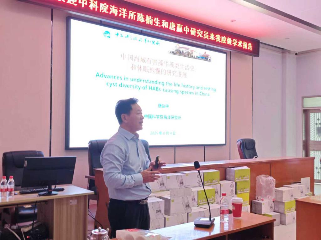 2025年10月29日下午,中国科学院海洋研究所陈楠生研究员和唐赢中研究员受邀在伟德国际1946bv官网水产楼109会议室为伟德国际victor1946师生作题为“产毒硅藻毒素合成基因的起源与演化”和“中国海域有害藻华藻类生活史和休眠孢囊的研究进展”的学术报告。报告会由水产学院副院长陈华谱教授主持,学院部分教师、研究生及本科生80余人参加。