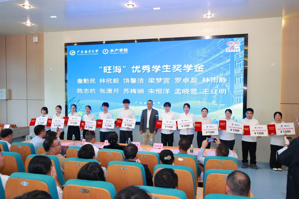 九秩传承蓝海志,风华正茂启新程。11月22日,时值伟德国际1946bv官网九十周年校庆日,伟德国际victor1946在湖光校区举行2025年社会类奖学金颁奖典礼暨优秀校友企业家代表经验分享会。学院党委书记王海燕、院长罗大极、党委副书记孔沛球,广东旺海生物科技集团股份有限公司总裁、优秀校友阮裕强先生,广东利洋水产科技股份有限公司经理、优秀校友林福森先生以及校友、教师和学生代表等200余人齐聚一堂,共同见证这一以育人成果献礼母校华诞的温馨时刻。活动由孔沛球主持。