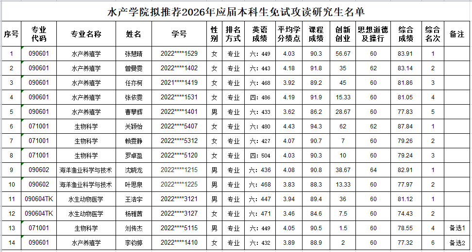 附件1:伟德国际victor1946拟推荐2026年应届本科生免试攻读研究生名单