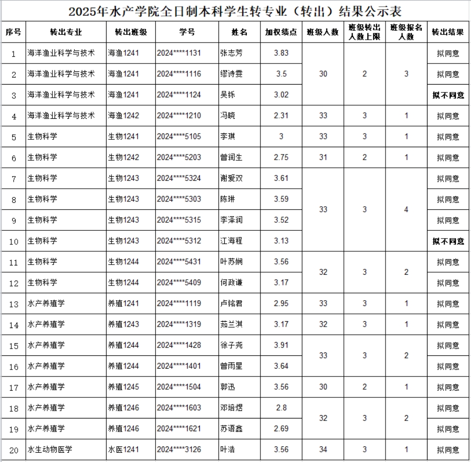 附表:2025年伟德国际victor1946全日制本科学生转专业(转出)结果公示表