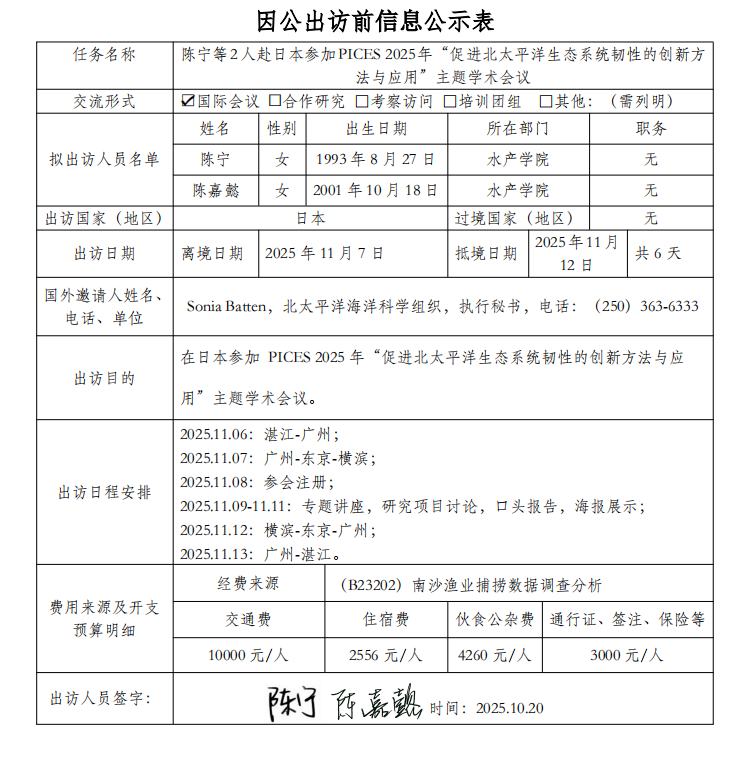 关于陈宁、陈嘉懿同志因公出国信息公示