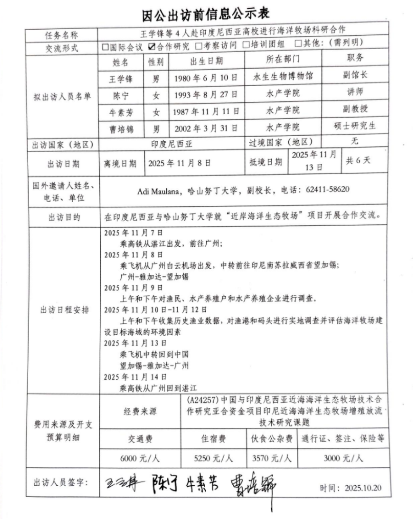 根据《关于进一步规范省部级以下国家工作人员因公临时出国的意见》的要求,现将伟德国际1946bv官网因公出访信息予以公示(详见附件)。公示时间为2025年10月20日至10月24日。如有意见,请在公示期内,向相关单位反映。