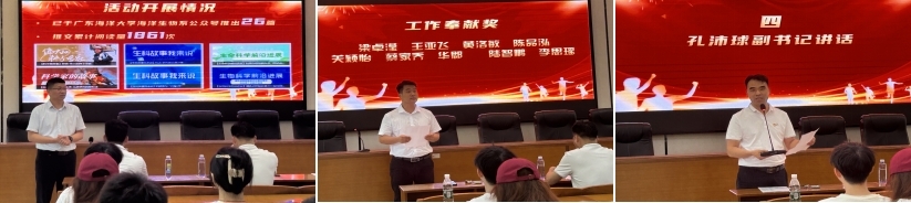 会上,田昌绪在对活动进行总结时强调,在为期一个月的活动中,共有51位同学积极参与,他们自主收集素材,共完成了131篇课程思政推文,其中26篇推文已在伟德国际1946bv官网海洋生物系公众号上发布,累计阅读量达到1861次,充分展现了活动的广泛参与度和积极效果。陈景阳随后宣读了获奖名单后,获奖者们依次上台领取荣誉证书和奖品,他们的努力赢得了与会人员的热烈掌声。孔沛球在总结发言中对本次活动给予了肯定,并鼓励学生们继续在学术道路上坚守学术诚信,追求卓越,积极参与学院的各项教育教学活动,共同推动学院的学风建设和思政工作再上新台阶。
