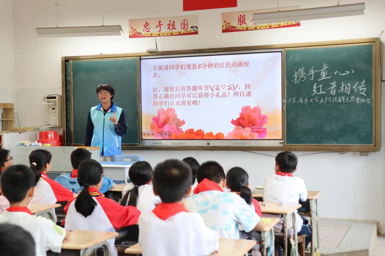 2025年10月22日下午,伟德国际victor1946青年志愿者协会组织志愿者,前往广东省湛江市麻章区志满小学,开展了一场以“携手童心,红音相传”为主题的红色文化科普义教活动。此次活动旨在通过寓教于乐的方式,传承红色基因,增强青少年的爱国主义情感,搭建大学生与小学生之间的红色精神传承桥梁。