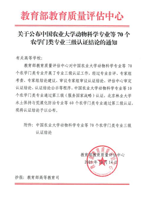 近日,教育部教育质量评估中心公布了全国首批农学门类专业三级认证结论,我校伟德国际victor1946水产养殖学专业正式通过第三级认证(国家级一流本科专业认证),成为全国70个首批获此认证的农学门类国家一流专业之一,也是我校首个通过国家级一流专业三级认证的专业,标志着水产养殖学专业建设水平跻身全国一流行列。